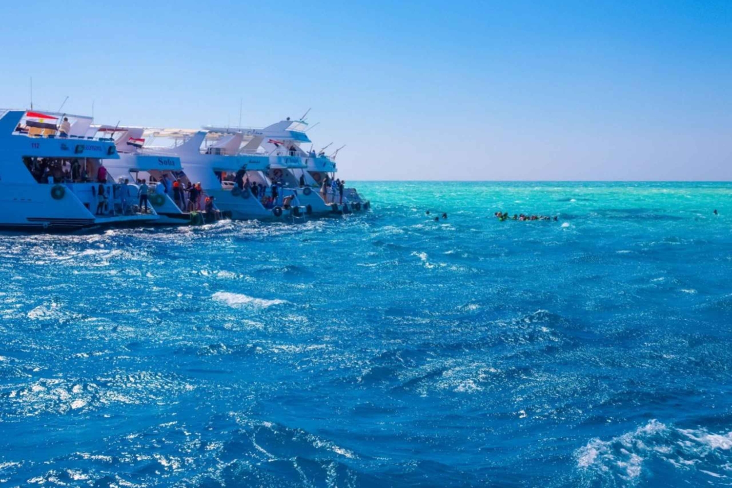 Take a full-day boat trip from Sharm El-Sheikh to Ras Mohamed and White Island. Snorkel and dive among vibrant coral reefs, enjoy crystal-clear waters, and savor a delicious BBQ lunch on board.
