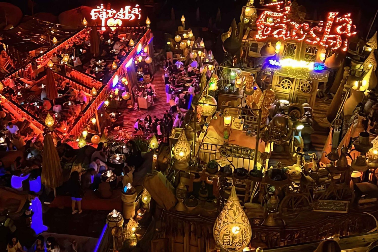 Embárcate en un viaje cautivador por las maravillas nocturnas de Sharm el Sheikh con nuestra exclusiva 'Experiencia nocturna en Sharm'. Prepárate para quedar encantado mientras combinamos el acogedor encanto del Café Farsha con la vibrante energía de Soho Square para una noche rebosante de emoción y encanto. Empieza la noche en el Café Farsha, un oasis escondido en el corazón de Sharm el Sheij. Entra en un mundo de encanto y relajación árabes, donde los cojines de felpa y la decoración exótica preparan el escenario para una reunión íntima. Nuestros amables conductores te llevarán a este remanso de tranquilidad, donde podrás deleitarte con aromáticos sabores de shisha y saborear la calidez de la hospitalidad tradicional bajo el cielo estrellado. A medida que avanza la noche, adéntrate en las bulliciosas calles de Sharm el Sheij y llega a Soho Square, el palpitante epicentro del entretenimiento. Deja que nuestros expertos conductores te guíen por el animado ambiente mientras exploras una plétora de elegantes boutiques, restaurantes gourmet y animados bares. Desde degustar deliciosas cocinas internacionales hasta sumergirte en actuaciones musicales en directo, Soho Square ofrece un variado abanico de experiencias para deleitar tus sentidos. A lo largo de la noche, nuestros dedicados conductores te acompañarán en esta curada aventura, asegurándose de que experimentes lo mejor de ambos mundos en el Café Farsha y en Soho Square. Tanto si buscas un lugar acogedor para relajarte como si te apetece una velada llena de delicias culinarias y entretenimiento en directo, la 'Noche de Sharm' promete una escapada inolvidable llena de calidez, hospitalidad e infinitos recuerdos que atesorar. El Ice Bar de SOHO Square está siendo objeto de una increíble renovación para ofrecerte una experiencia aún más extraordinaria.Incluye