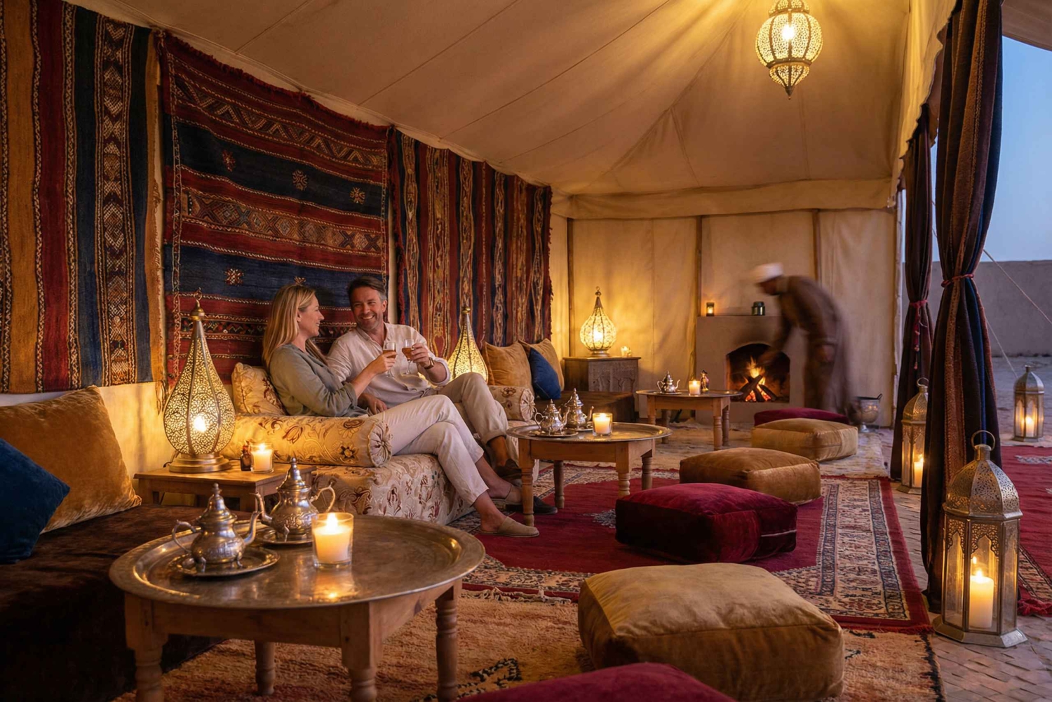 Трансфер из отеля в Марракеш и обратно Транспорт на кондиционированном мини-автобусе или внедорожнике Водитель-гид, говорящий на английском/французском/испанском языках 1 ночь в отеле в долине Дадес (отдельный номер с ужином и завтраком) 1 ночь в пустынном лагере в Мерзуге (отдельная палатка с ужином и завтраком) Поездка на верблюдах по дюнам Эрг-Чебби (закат и восход солнца) Сэндбординг (по желанию, при благоприятных погодных условиях) Традиционные марокканские ужины и завтраки Берберская музыка и костёр под звёздным небом Остановки в Айт-Бен-Хадду, ущельях Тодга и на панорамных смотровых площадкахImportant Information