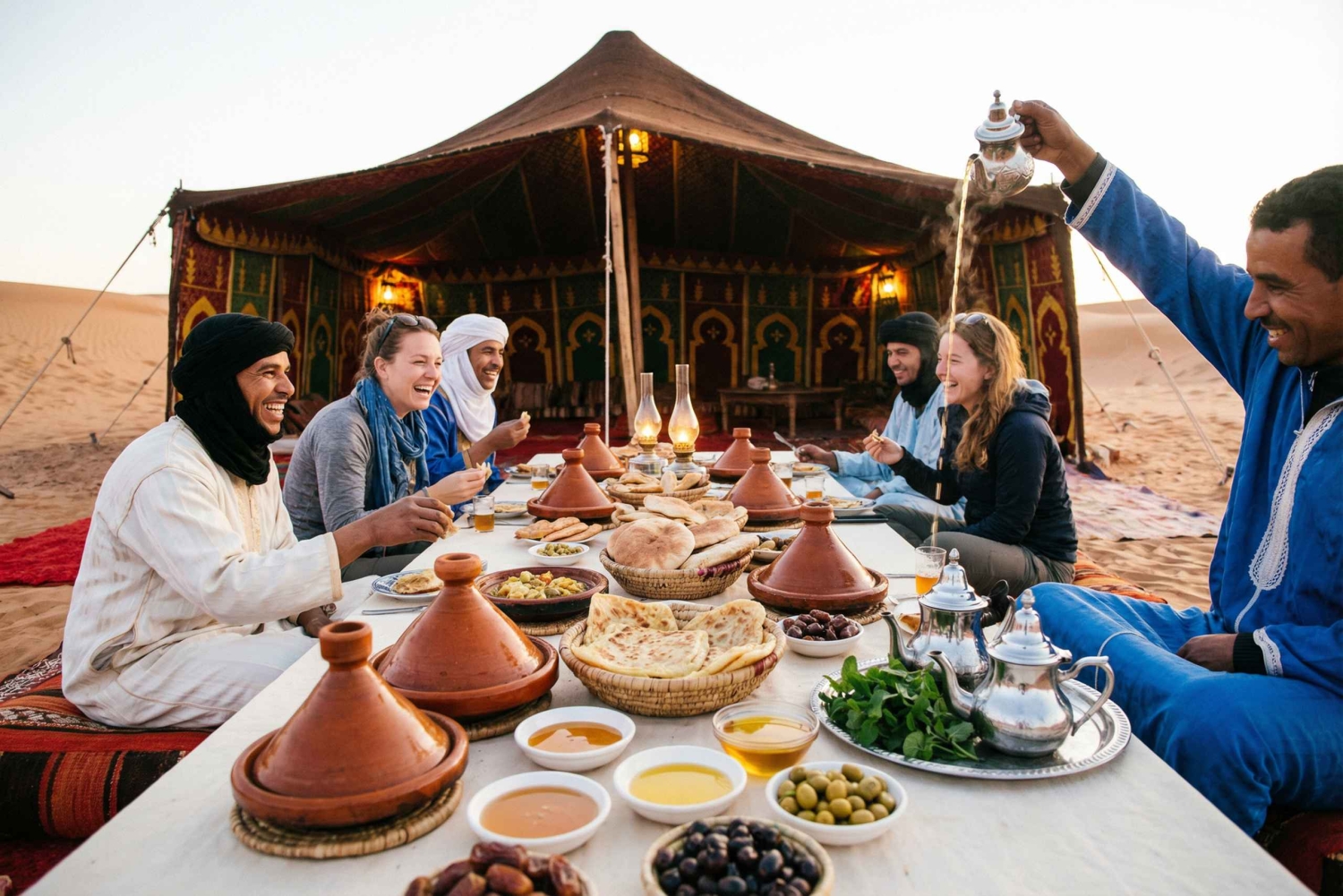 - Трансфер осуществляется с 07:00 до 08:00 в зависимости от расположения отеля или риада.