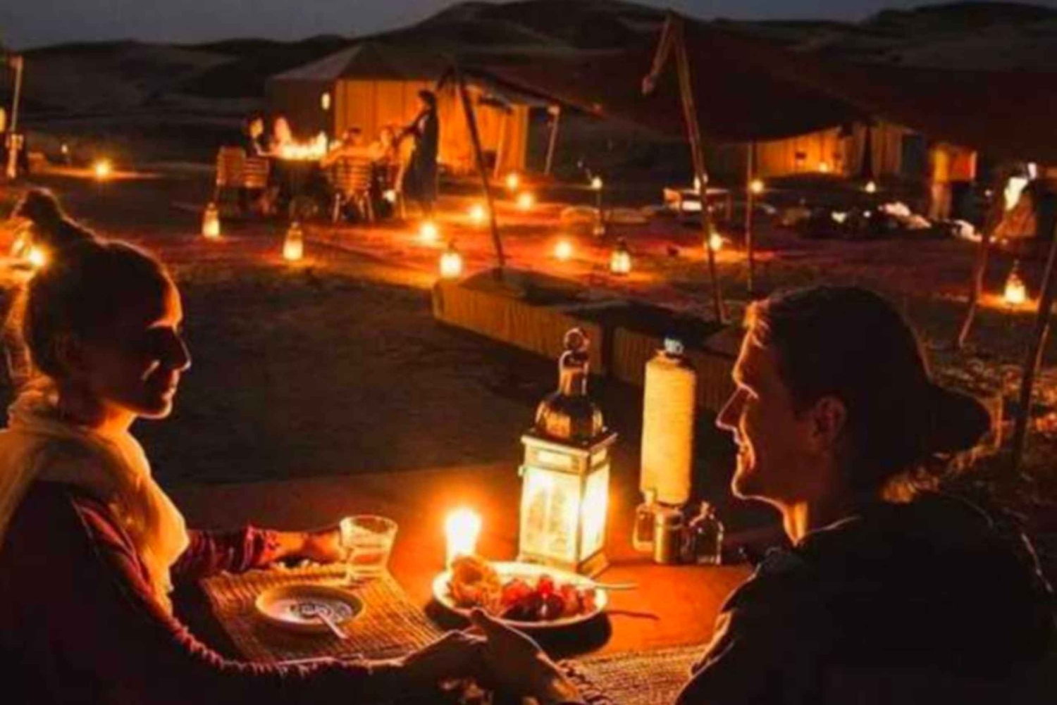 Встреча в отеле и высадка Транспорт Поездка на верблюде Ужин Чай Вода Сахарский наряд Бассейн музыка огненное шоуEasy cancellation