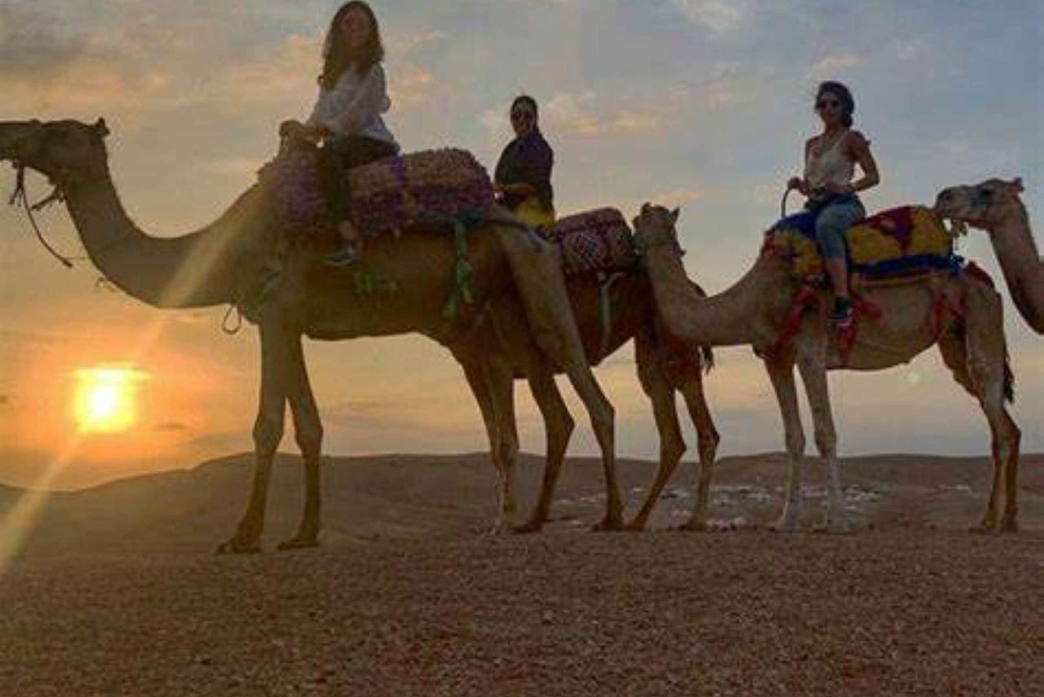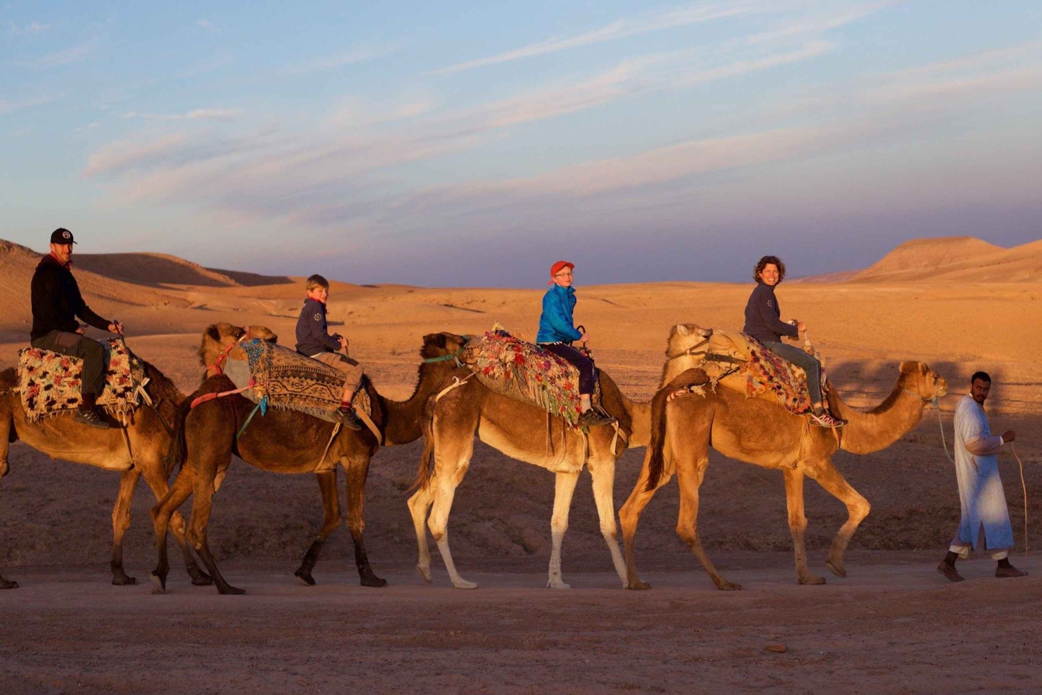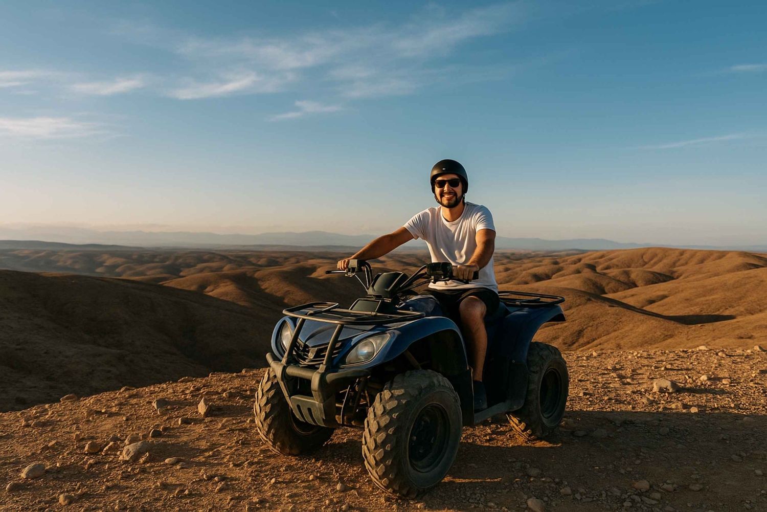 Катание на квадроциклах • Катание на верблюдах • Виды на закат • Ужин и шоу • Трансфер из отеля Приглашаем вас провести незабываемый вечер в пустыне Агафай, расположенной недалеко от Марракеша. В программу входит захватывающая поездка на квадроциклах, спокойная прогулка на верблюдах на закате, традиционный марокканский ужин и увлекательное шоу под звездами. --- Трансфер из отеля С 14:00 до 17:00 вас бесплатно заберут прямо из отеля в Марракеше. Обратите внимание: посещение риадов в Медине на автомобиле невозможно. Местом встречи будут ближайшие доступные ворота или площадь. Путешествуйте в комфортабельном микроавтобусе с кондиционером по живописным ландшафтам в пустынный лагерь в Агафае – скалистой местности с панорамным видом на горы Атлас, аутентичной альтернативе Сахаре. --- Катание на квадроциклах: острые ощущения на бездорожье Наденьте шлем и очки и прокатитесь по пересеченным тропам Агафая. Под руководством профессиональных инструкторов, говорящих на английском, французском и арабском языках, это безопасное и удобное для новичков мероприятие наполнено адреналином. Небольшие группы обеспечивают более индивидуальный подход к приключениям. --- Катание на верблюде на закате — марокканская традиция Замедлитесь, совершив спокойную прогулку на верблюдах, пока солнце садится за горизонт пустыни. Идеально подходит для пар, семей и одиночных путешественников, а также для съемки незабываемых фотографий с потрясающими пустынными пейзажами. --- Ужин и живое шоу под звездами С наступлением ночи вас ждет марокканский ужин, включающий: Тажин Кускус Марокканская выпечка Ужин подается в просторных берберских шатрах. Вечером вас ждут живая музыка гнава, фольклорные танцы и захватывающее огненное шоу от профессионального артиста, создающее волшебную атмосферу. На территории также имеется бассейн (по желанию). --- Полезная информация Рекомендуется надеть удобную одежду и закрытую обувь. Возьмите с собой легкую куртку (в пустыне ночью может быть прохладно). Не забудьте взять с собой фотоаппарат и солнцезащитный крем. Вода включена в стоимость ужина. --- Для кого это предназначено? Искатели приключений Любителям культуры Парам и семьям Любителям фотографии Для всех, кто ищет уникальные впечатления в Марокко --- ✅ Что включено Приключение на квадроцикле Катание на верблюде на закате Марокканский ужин (таджин, кускус, харира, выпечка) Живая музыка, танцы и огненное шоу Трансфер в обе стороны на микроавтобусе. Страхование и защитное снаряжение Посещение бассейна (по желанию) --- ⭐ Главное Катание на квадроциклах в Марракеше Катание на верблюде в Марокко Сафари на закате в пустыне Агафай Подлинное берберское гостеприимство и культура Уникальные вечерние экскурсии из Марракеша --- Почему стоит забронировать у нас? Это не просто экскурсия, а культурное путешествие, сочетающее марокканские традиции с первозданной красотой пустыни. Забронируйте заранее, чтобы получить лучшие впечатления от пустыни Агафай в 2025 годуIncludes