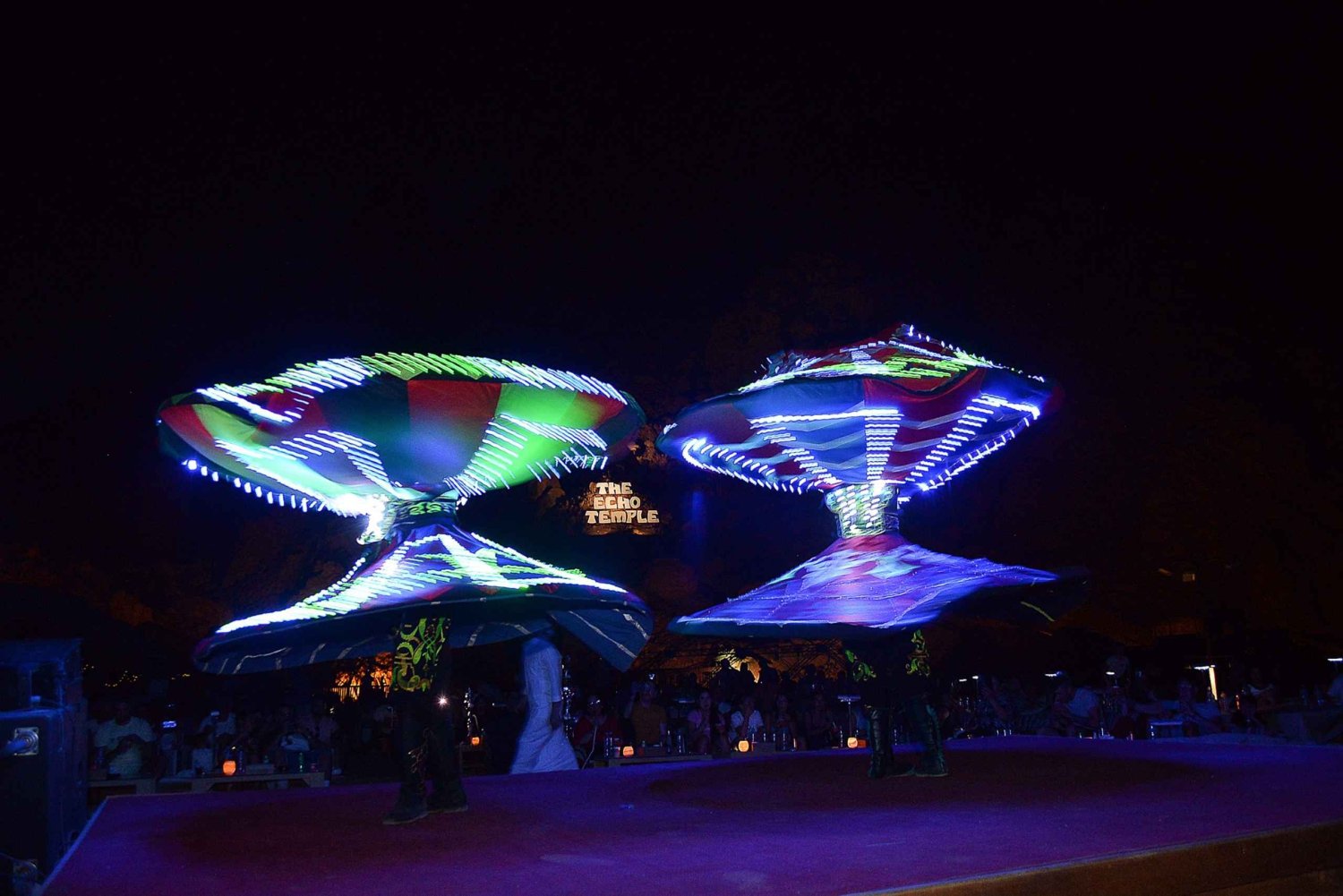 Upphämtning och avlämning vid hotell Traditionell beduinmiddag och orientaliska desserter Läsk och vatten Kamelridningstur runt vår oas och plats (15 min) Egyptisk beduinbrödshow Egyptisk långkokt mandi-show Liveföreställningar: Orientalisk show, eldföreställning, med beduinstamdans och regional musik Vandring i solnedgången med havsutsikt intill landmärket Ekotemplet Stjärnskådning under en kristallklar ökenhimmel Kort dokumentärvisning om Sinai beduinkultur (undertexter finns) Tillgång till toaletter av hotellstandardImportant Information