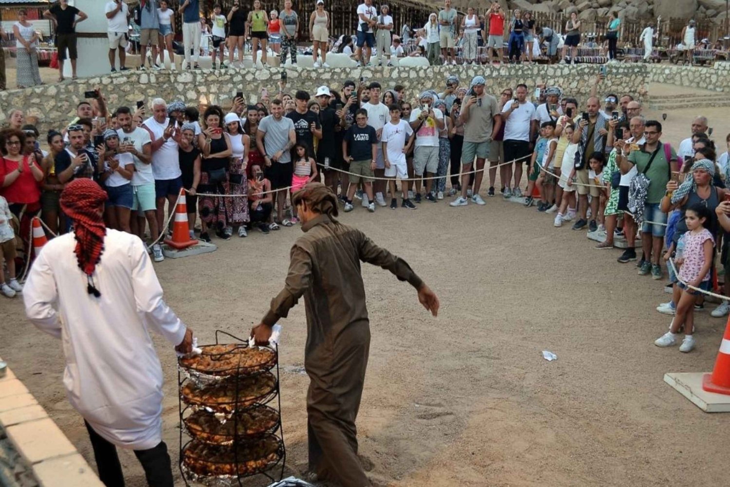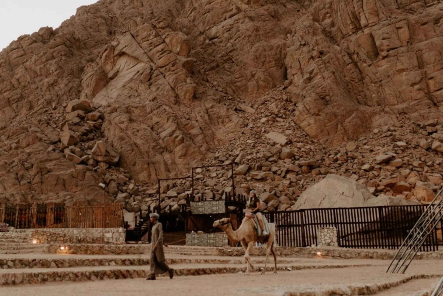 Upplev en exklusiv arabisk natt med en beduinmiddag, live ökenshow, kamelritt och vandring till en panoramautsikt över solnedgången, följt av stjärnskådning under den klara Sinai-himlen